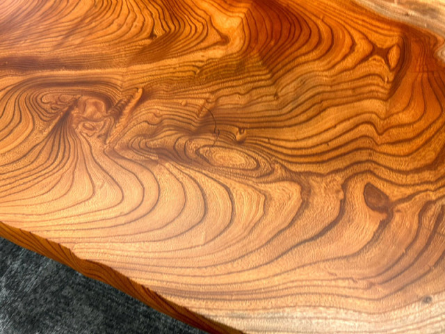 欅(ケヤキ)は宮城県の県木であり、仙台市・定禅寺通の美しい並木道でも知られています。日本の伝統建築や家具に使われる、日本を代表する銘木です。特に一枚板は、つなぎ目のない自然の造形美をそのまま楽しめます。やや赤みを帯びた心材と力強い木目が特徴で、重厚感と気品を兼ね備えています。使い込むほどに色艶が増し、味わい深い表情へと変化します。 世界にひとつだけの、美しく存在感のある空間を演出。4人掛けに最適な幅150cmで、脚の置き方を変えるだけでテーブルとしても座卓としてもお使いいただけます。 ※パソコンやスマートフォンなどのディスプレイの種類や性能により、実際の商品と色味が異なって見える場合がございます。 ※照明や自然光の下では、商品の色味や質感が異なって見えることがあります。