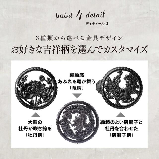 引出し材:桐(きり)無垢板塗り: 本漆 木地呂漆塗り、朱色漆塗り、伝統色漆塗り 金具: オリジナル鍛造金具 - 原産国