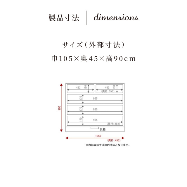 - 【外部寸法】巾105×奥45×高90cm