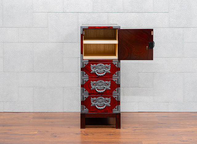 引出し材:桐(きり)無垢板塗り: 本漆 拭き漆塗り 金具: 特製鍛造金具
