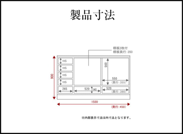 | 外寸法: | 幅1500mm × 奥行450mm × 高さ900mm |