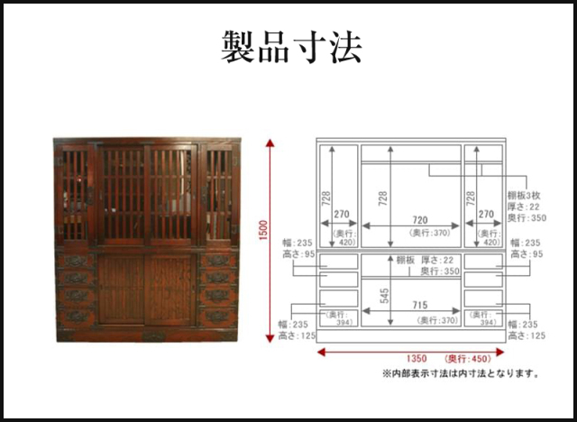| 外寸法: | 幅1350mm × 奥行450mm × 高さ1500mm |