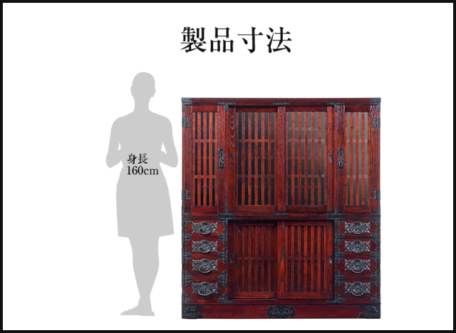 | 製品名: | 仙台箪笥 四.五尺リビングボード150 KC-509 拭き漆塗り(食器棚・桐タンス・サイドボード・和家具・アンティーク) |