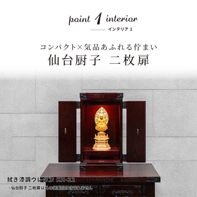 | 製品名: | 仙台厨子二枚扉 KH-22 拭き漆調 |コンパクト ミニ仏壇 モダン仏壇 |