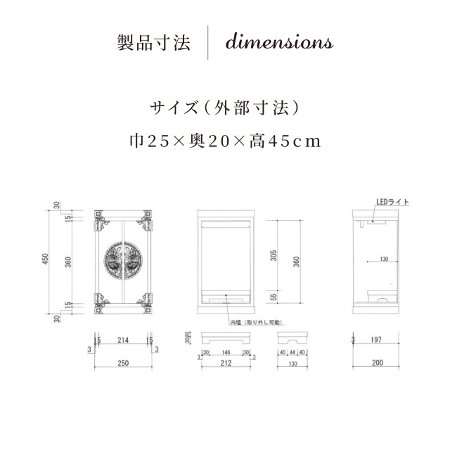 | 外寸法: | 幅250mm × 奥行200mm × 高さ450mm |