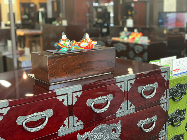 身の回りの小物収納、贈り物の包装や飾るなどしてお楽しみいただける小物入れBOX「思い箱」です。 木地作り、塗り、飾り金具、失われつつある日本の職人技で製作しました。 (1) ギフト箱として-お酒を楽しんだ後、箱も愛用していただくために クオリティの高い贈り物はパッケージも立派ですが、日本酒用の桐箱はその後の利用方法が無く廃棄することが多いようです。 贈りたいお酒に対してパッケージを選択する、新しい方法をご提案したいと思います。 仙台箪笥ギフト箱を選べば、お酒を飲んだ後でも廃棄することなくほかの用途にご愛用いただけます。 (2) 小物入れとして様々の利用を 少し大きめの小物入れとしてご利用頂けます。 ※中身は含まれません。