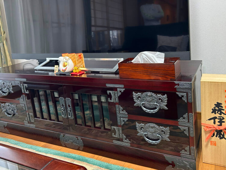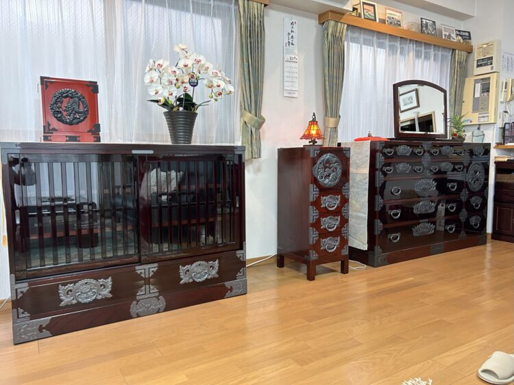 もともと置いている仙台箪笥の塗り色や金具の色をお伺いし、S様が日常でも使いやすく、さらにインテリアとしても楽しめる上質な仙台箪笥をお選び頂きました。