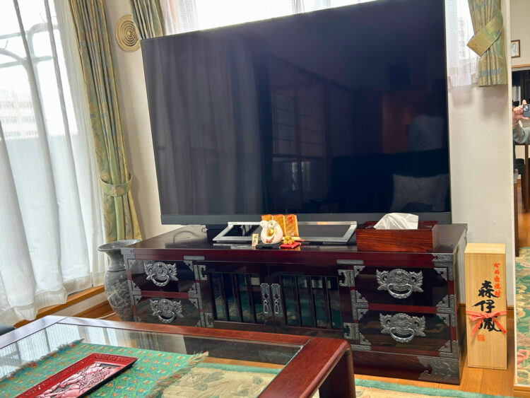 お母様の仙台箪笥が映え、同じ黒銀色の金具で調和がとれたとても素敵なリビングの設えです。S様、本当にありがとうございました。