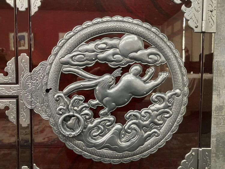 彫金手打金具 「因幡の白兎」仙台箪笥