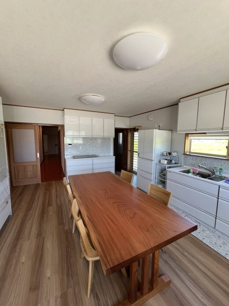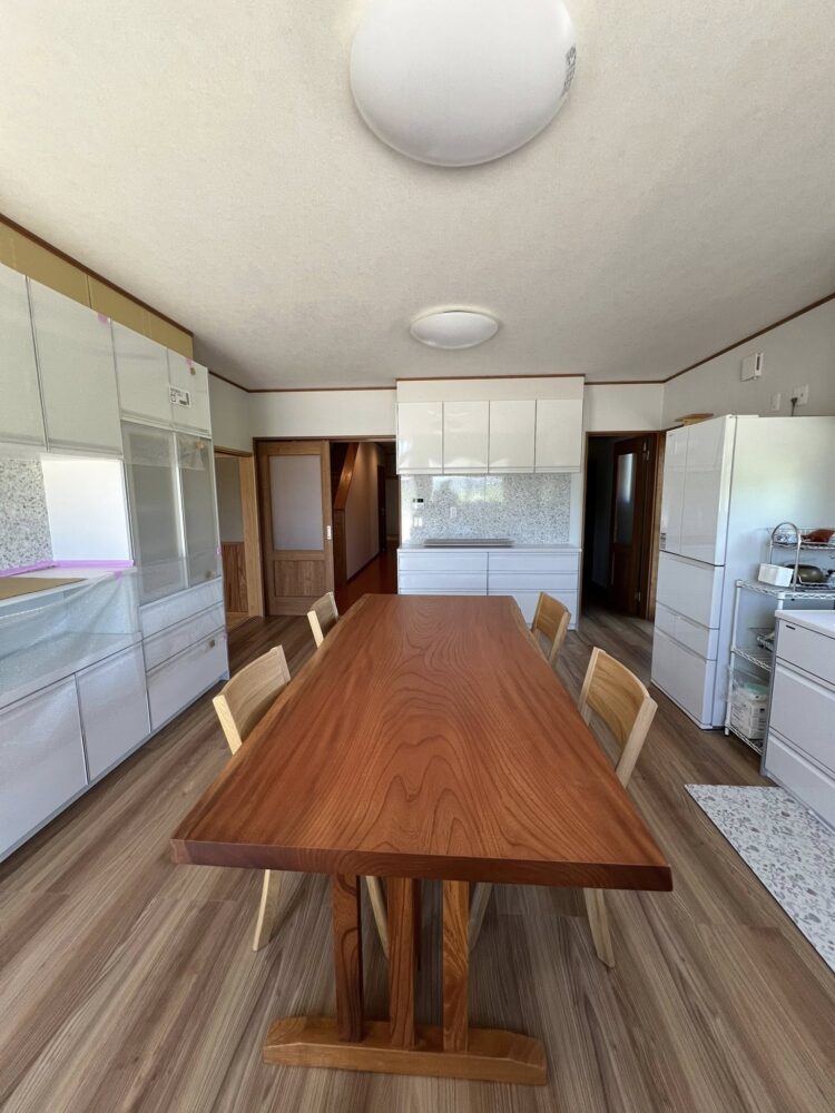 新築のダイニングに240cmの欅一枚板を納品させていただきました。