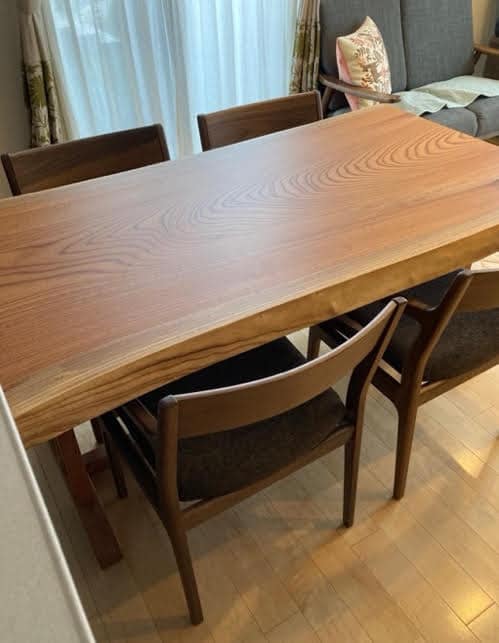 宮城県O様はそのケヤキの美しい杢目を気に入って家族が揃う憩いの場所に置いて頂きました。