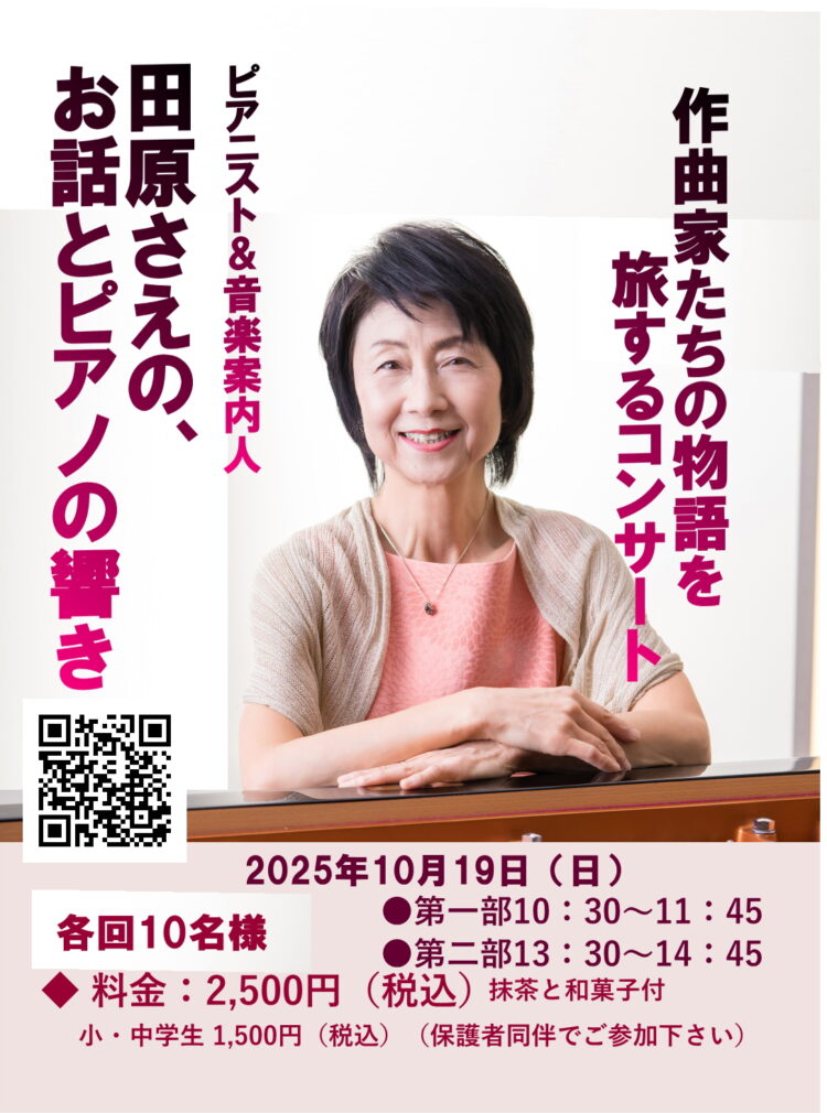 【作曲家たちの物語を旅するサロンコンサート】 ―田原さえのお話しとピアノの響き―