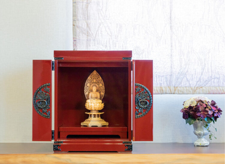 仏壇は、家族みんなで仏さまをおまつりする場所です。仏像だけでなく、ご先祖さまや亡くなった方をしのぶ祭壇としての役目もあります。