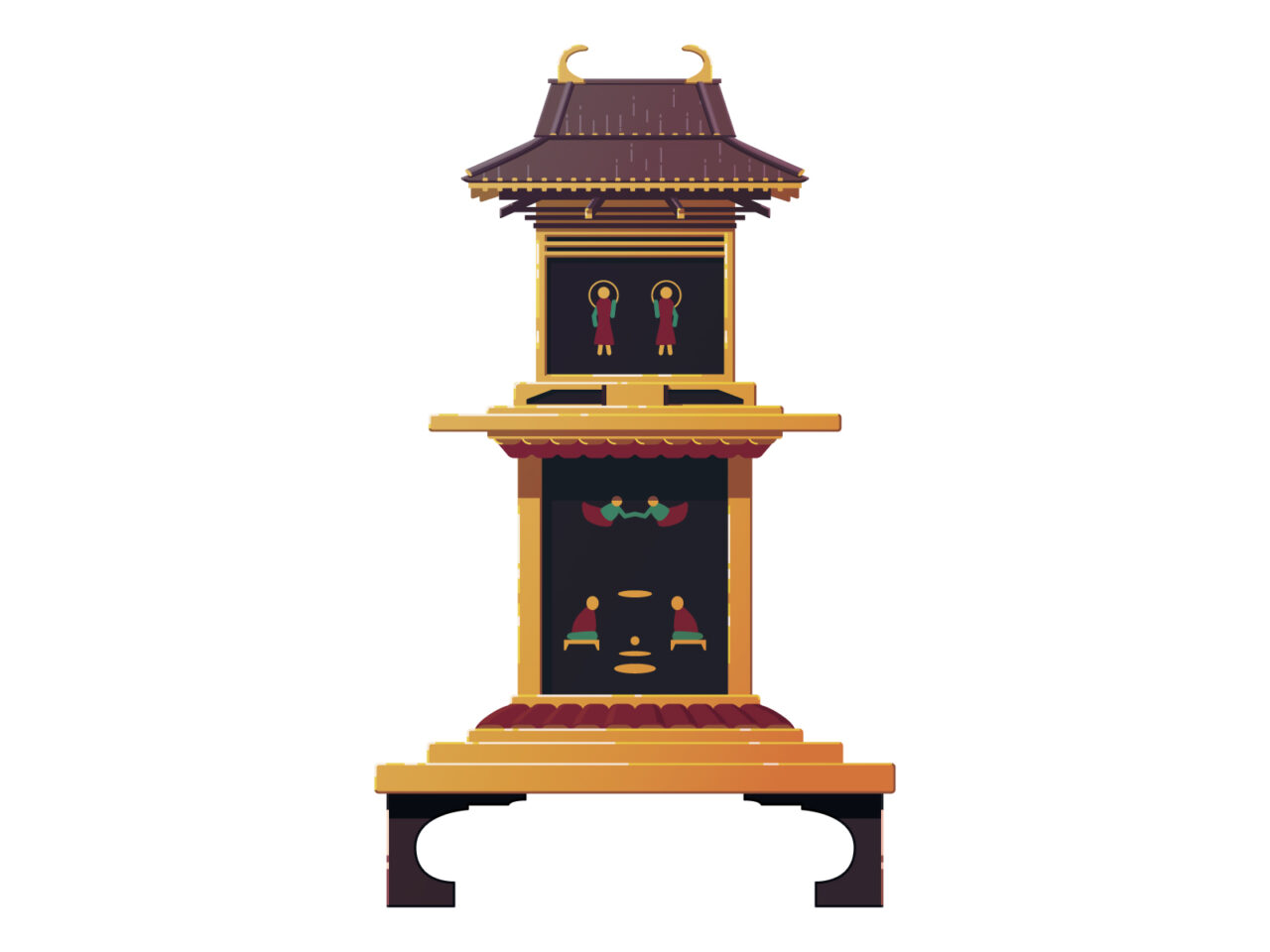 それに対して厨子(ずし)は、もっと小さなもので、ひとりひとりが使うことが多いです。仏像や位牌(いはい)のほかに、お守りや思い出の品など、大事なものを入れる箱として使われます。